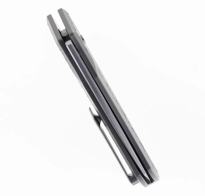 TwoSun Folding Knife Titanium Handle W/ Carbon Fiber Inlay M390 Plain Edge TS186-M390