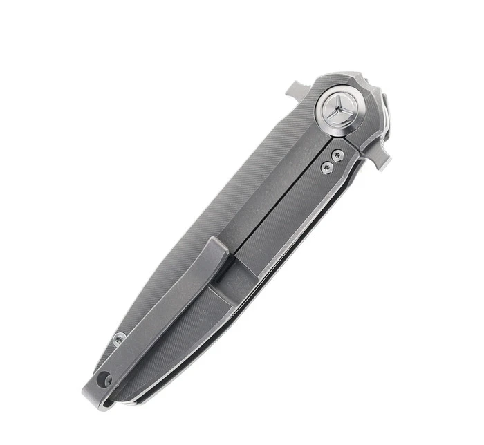TwoSun Folding Knife Titanium Handle W/ Carbon Fiber Inlay M390 Plain Edge TS186-M390
