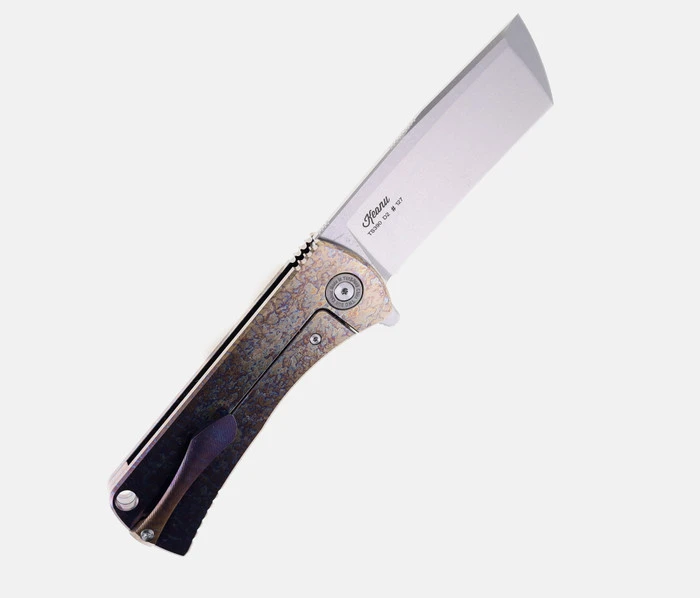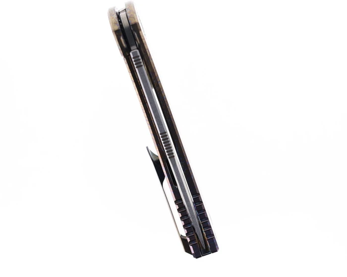 TwoSun Folding Knife Titanium Handle W/ Carbon Fiber Inlay M390 Plain Edge TS186-M390