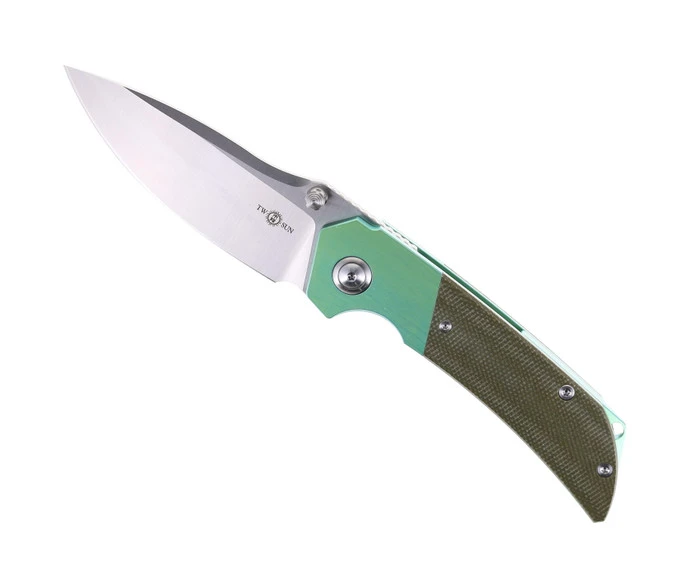 TwoSun Folding Knife 14C28N Titanium Handle Plain Edge TS279
