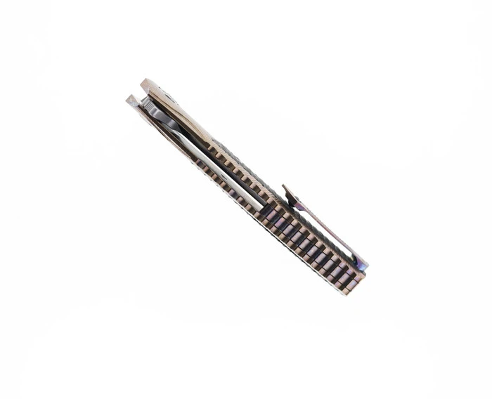 TwoSun Tepe Designs Button Lock Folding Knife Color Titanium Handle D2 Plain Edge TS210-Color