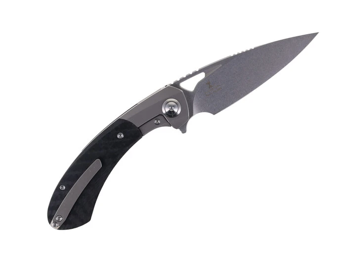 TwoSun Front Flipper Pocket Knife Purple Titanium & Carbon Fiber Handle M390 Blade TS389-PUR