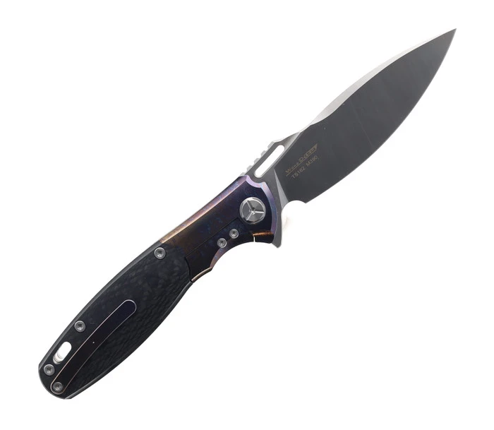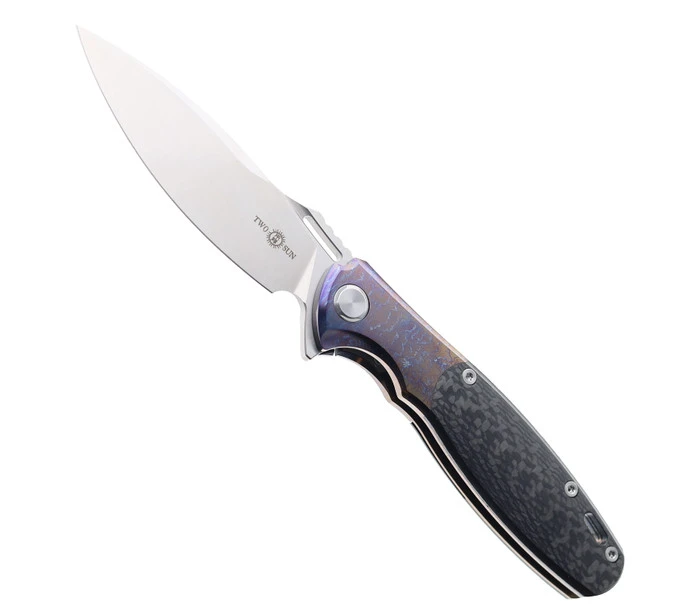 TwoSun Folding Knife Titanium Handle W/ Carbon Fiber Inlay M390 Plain Edge TS186-M390