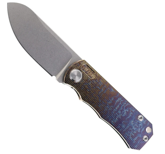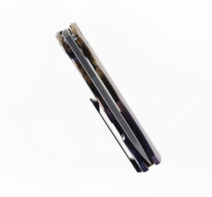 TwoSun Folding Knife Titanium Handle W/ Carbon Fiber Inlay M390 Plain Edge TS186-M390