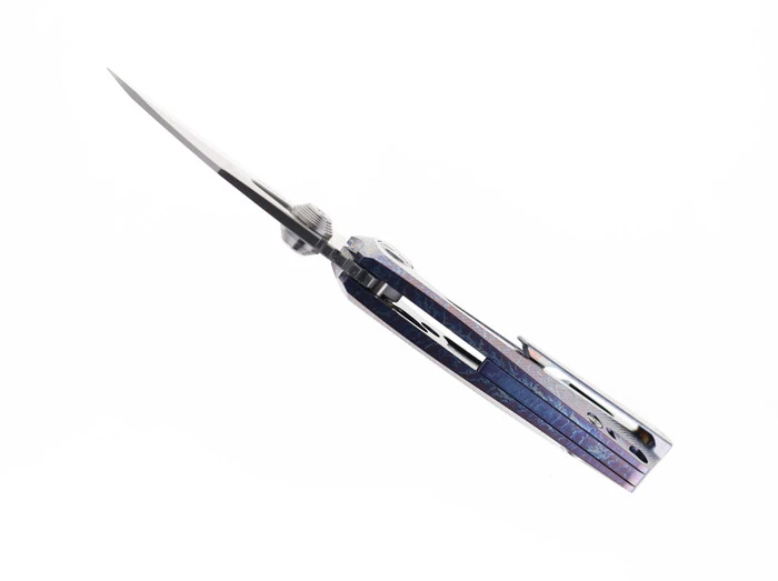 TwoSun Tepe Designs Button Lock Folding Knife Color Titanium Handle D2 Plain Edge TS210-Color