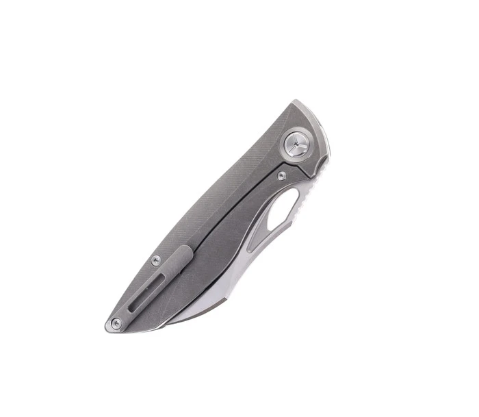 TwoSun Folding Knife Titanium Handle W/ Carbon Fiber Inlay M390 Plain Edge TS186-M390