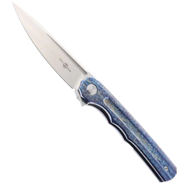 TwoSun Folding Knife 14C28N Titanium Handle Plain Edge TS279