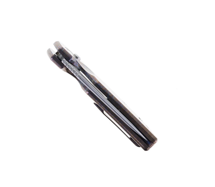 TwoSun Front Flipper Pocket Knife Purple Titanium & Carbon Fiber Handle M390 Blade TS389-PUR